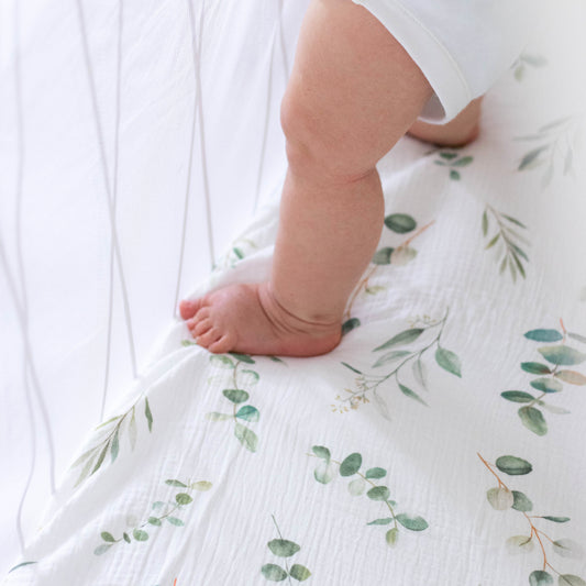 Lot de 2 draps housse 100% gaze de coton bio GOTS - 60x120cm - Collection EUKALYPTUS